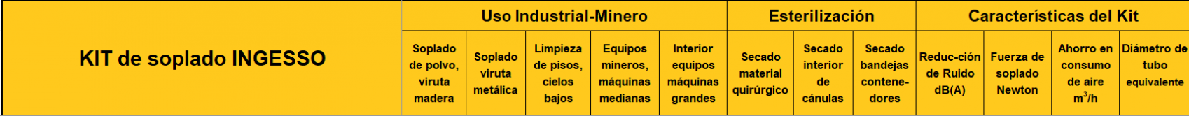 Reducción de ruido y ahorro de consumo de aire, respecto del producido por un tubo de soplado de diámetro equivalente, bajo condiciones normalizadas.